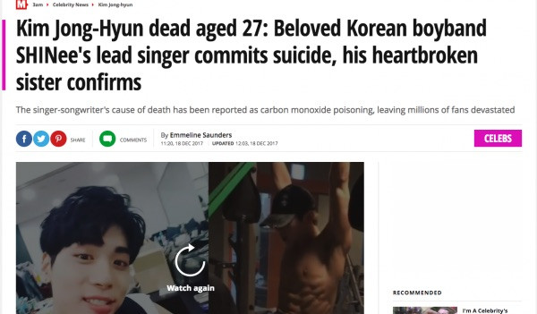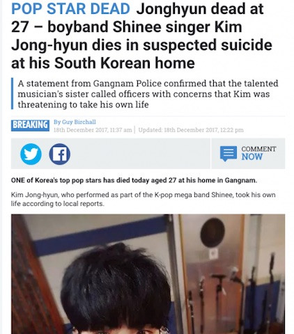 Sự việc gây chấn động giới giải trí Hàn Quốc cũng như châu Á. Thậm chí, những tờ báo lớn trên thế giới như như Mirror, Independent, The Sun… cũng đồng loạt đưa tin về việc Jonghyun tự tử.