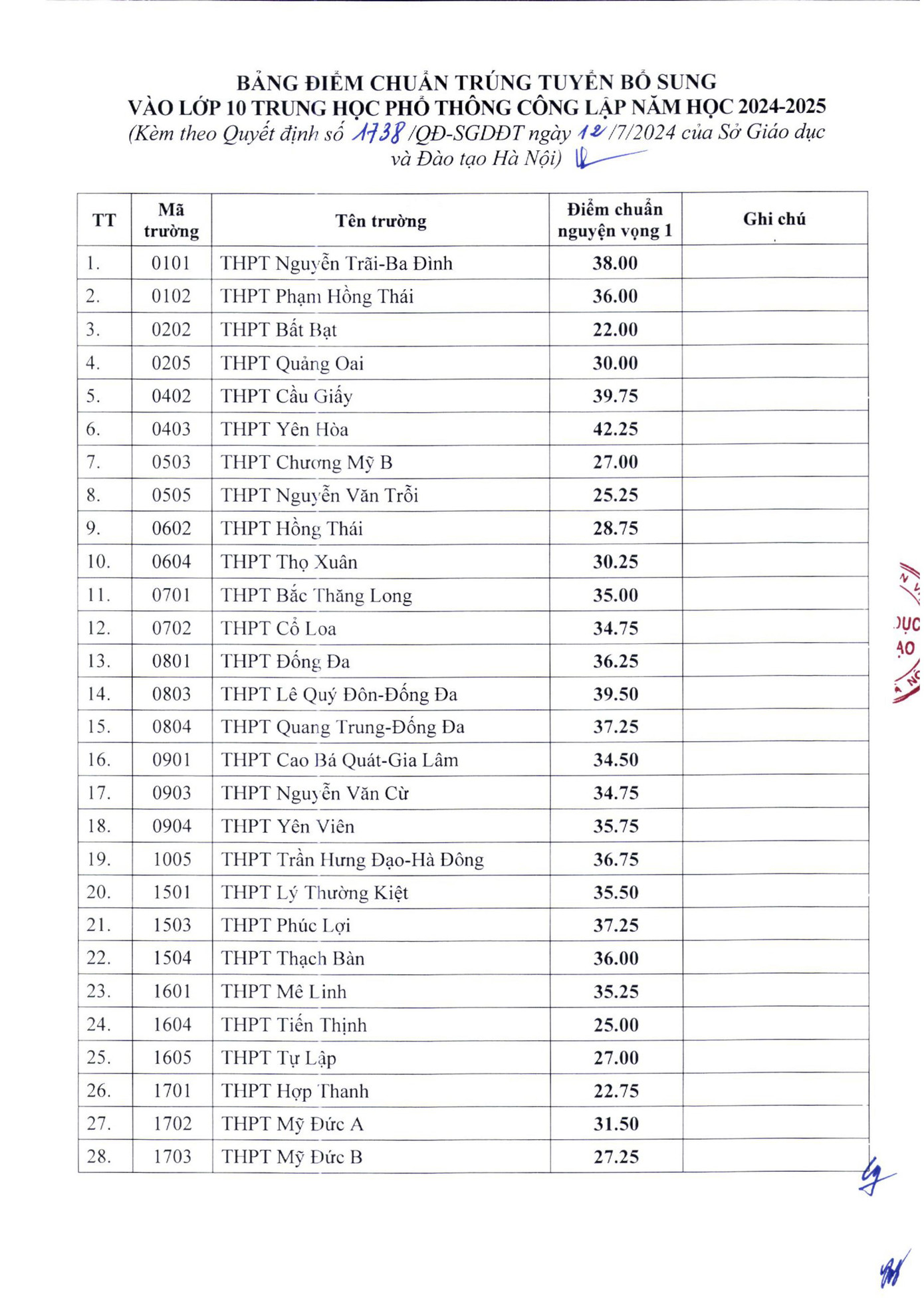 Như vậy, trường có điểm chuẩn hạ cao nhất là Trường THPT Bất Bạt và Trường THPT Minh Quang giảm 3 điểm so với điểm chuẩn công bố lần 1.