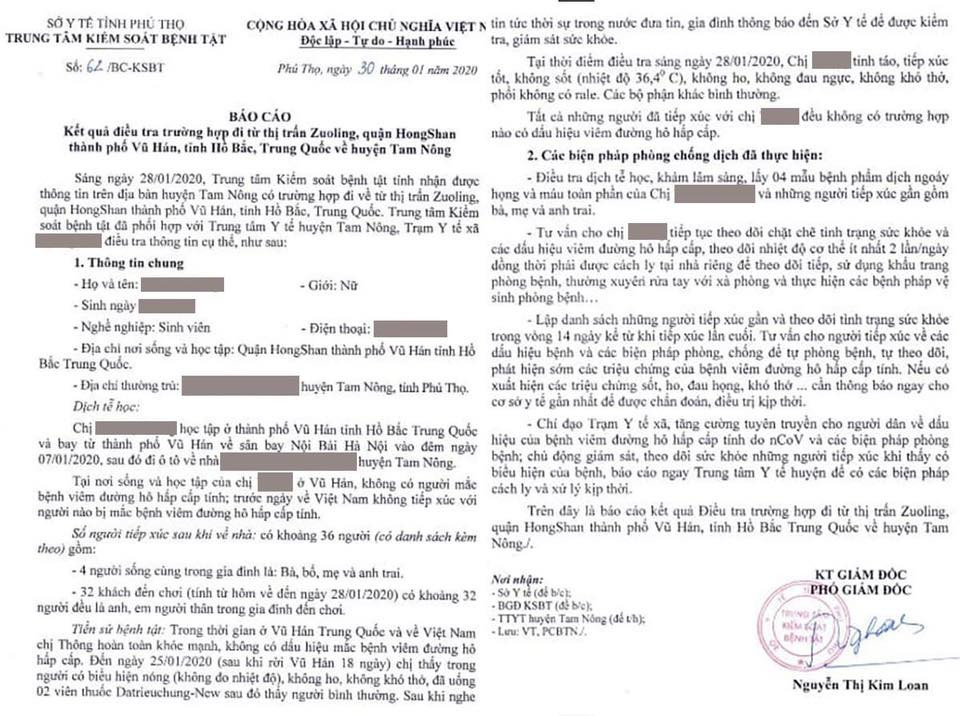 Có một trường hợp là chị T, xã Quang Húc, huyện Tam Nông từ thành phố Vũ Hán, Trung Quốc về Việt Nam đêm 7/1. Sau đó lên taxi đi thẳng về nhà. Đến ngày 25/1, cảm thấy người không được khỏe nên tự ý uống hai viên thuốc (chưa rõ nhãn hiệu). Đội phản ứng nhanh của huyện Tam Nông đã ngay lập tức có mặt và ghi nhận trường hợp chị T. không có các biểu hiện nhiễm bệnh như sốt, ho, khó thở...