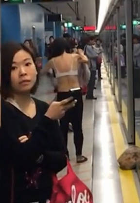 Một phụ nữ tại Hong Kong (Trung Quốc) đã thản nhiên cởi phăng chiếc áo đang mặc trên người và để lộ nội y ngay tại sân ga điện ngầm Kowloon Tong.