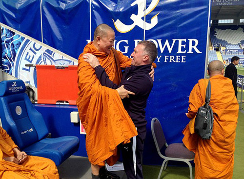 Ít ai để ý việc một số nhà sư mặc áo vàng bí ẩn đã xuất hiện trên sân King Power của Leicester ngay trước thềm trận đấu với Man United. Chẳng tỏ ra xa lạ, họ tiến thẳng đến khu vực ban huấn luyện đội chủ nhà và trò chuyện vui vẻ với HLV Nigel Pearson sau đó trao cho một số cầu thủ vòng đeo cổ có mặt tượng Phật bí ẩn.