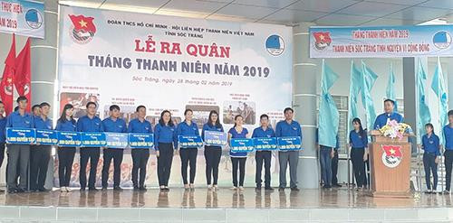 ĐVTN vệ sinh môi trường Tại buổi lễ, Tỉnh đoàn Sóc Trăng đã huy động được 1,5 tỷ đồng để hỗ trợ cho các hoạt động an sinh xã hội trên địa bàn tỉnh. Đồng thời, trao 10 suất học bổng, mỗi suất trị giá 1 triệu đồng, tặng 11.000 quyển tập cho học sinh nghèo…