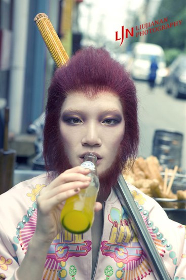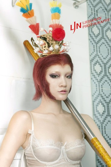 Đây là một bộ ảnh thời trang được nhiếp ảnh gia người Trung Quốc lấy cảm hứng từ nhân vật Tôn Ngộ Không của Tây Du Ký.