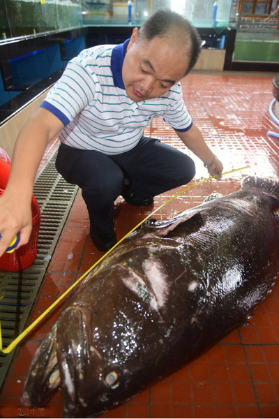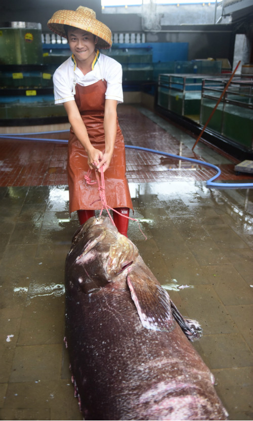 Ngư dân thị trấn Bác Ngao, tỉnh Hải Nam, Trung Quốc bắt được con cá mú nghệ khổng lồ trên biển Bác Ngao hôm 21/9, QQ đưa tin.