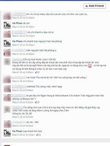 Điều đáng nói là trong suốt một tháng vừa qua, rất nhiều thành viên khác trong hội kín Hải Phòng đã mua thuốc từ người có tên Ha pham và khen ngợi loại thuốc tăng cân này hết lời.