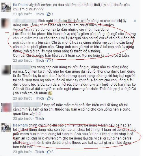 Được biết, trước đó, người có nickname hapham đã đăng video chồng và con uống thuốc tăng cân. Một thành viên khác trong hội kín Hải Phòng cũng bình luận: Mình nghĩ thuốc không tốt chắc chị ấy không cho con uống đâu, làm gì có mẹ nào lôi con ra làm chuột bạch câu khách!