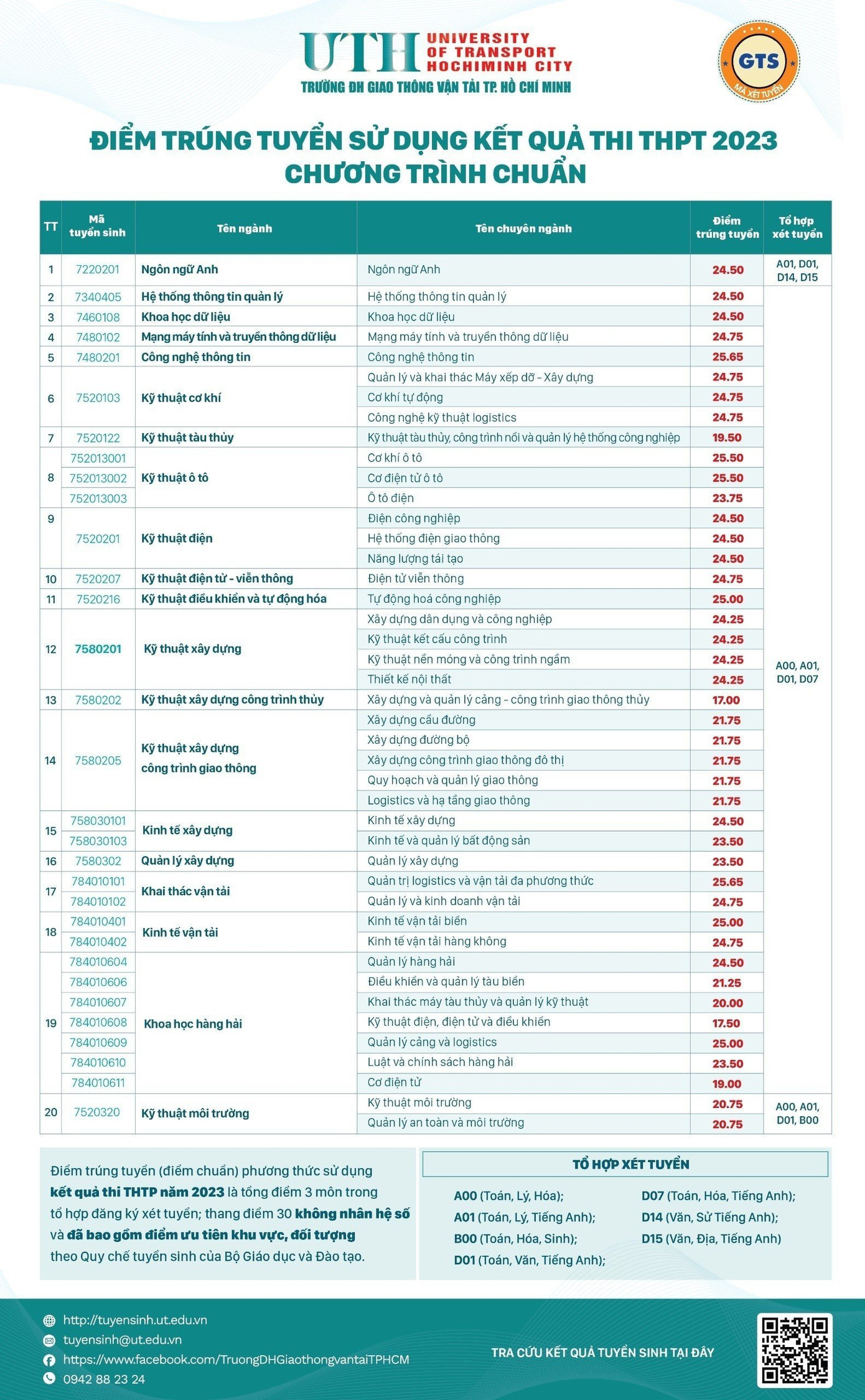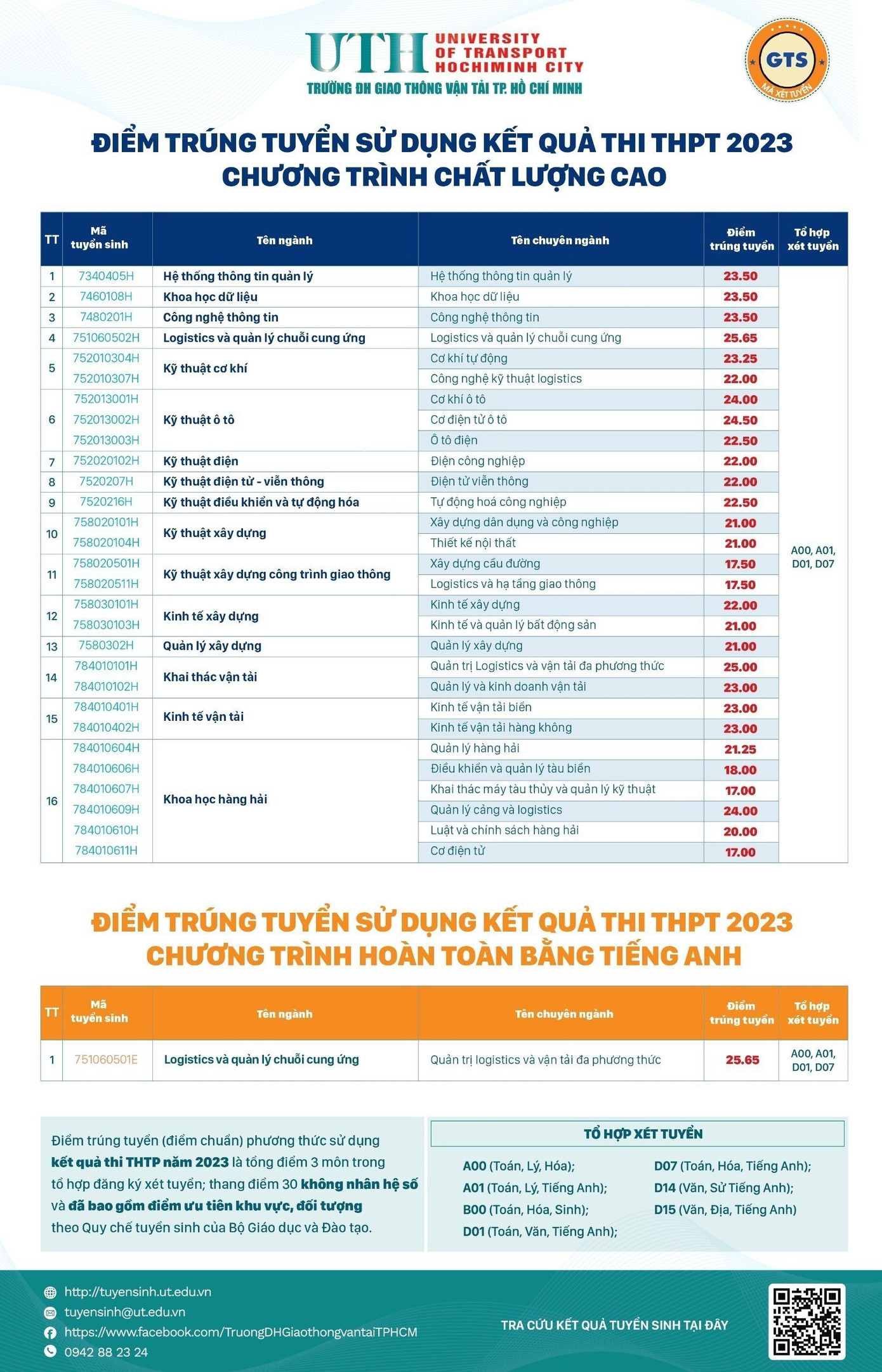 Sáng ngày 23/8, Trường ĐH Giao thông Vận tải TPHCM công bố điểm chuẩn trúng tuyển năm 2023.