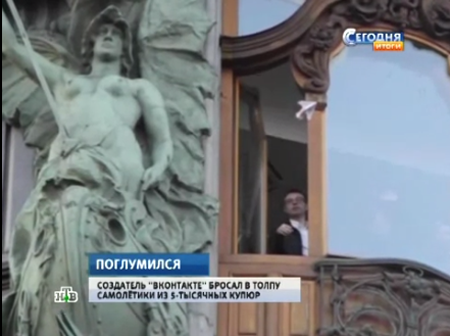 Tháng 5/2012, CEO Pavel Durov của mạng xã hội Nga Vkontakte đã khiến một góc thành phố St. Petersburg náo loạn khi gấp máy bay bằng những tờ 5000 rúp (khoảng 160 USD) và phi qua cửa sổ. Đám đông bên dưới đã đổ xô lại tranh giành những chiếc máy bay, không ít người còn xô xát và bị vỡ mũi, bầm dập. Một số người còn trèo lên cột đèn giao thông để chộp những tờ tiền.