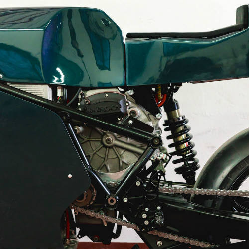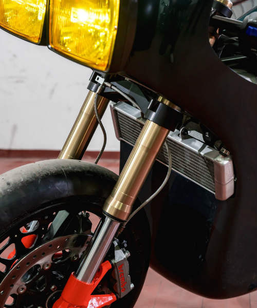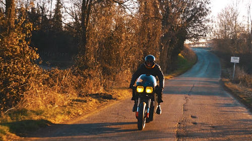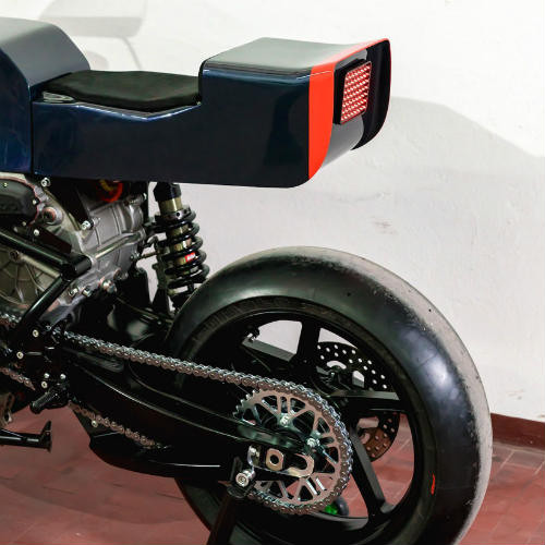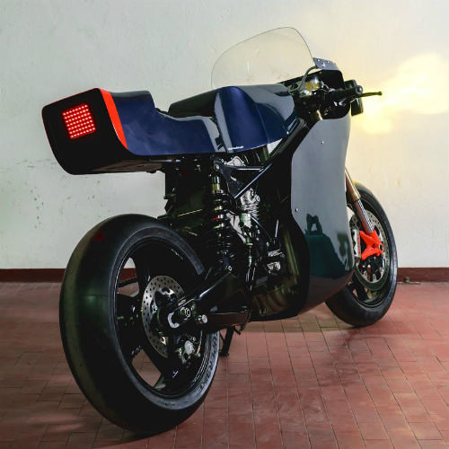 Qua tay các thợ độ, Ducati 750 F1 được sơn màu tối cùng bộ đèn pha vuông màu vàng đặt trên phần nhỏ của yếm quây. Động cơ điện do Energica Eva chế tạo được đặt ở phía sau phuộc xe. Dãy đèn đuôi LED được xếp theo hàng với 56 điểm chiếu sáng lazer.