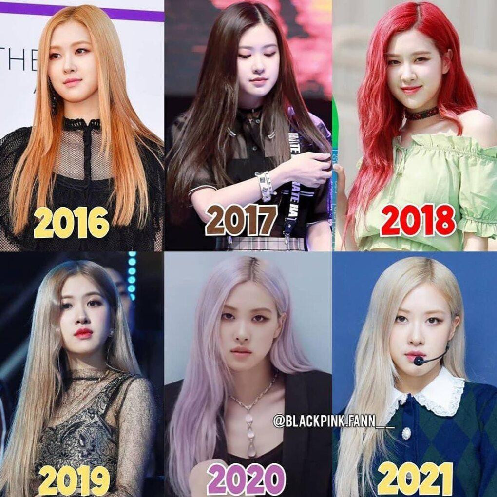 Rosé thời điểm mới debut có gương mặt bầu bĩnh rất đáng yêu. Sau khi giảm cân thành công, khuôn mặt Rosé thon gọn đi đáng kể, nhan sắc theo đó cũng nổi bật hẳn lên. Phong cách hiện tại được khen là rất hợp với Rosé nên khán giả đều thích giọng ca chính của BLACKPINK hãy cứ giữ tạo hình tóc vàng sang chảnh này.