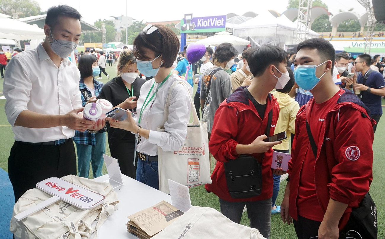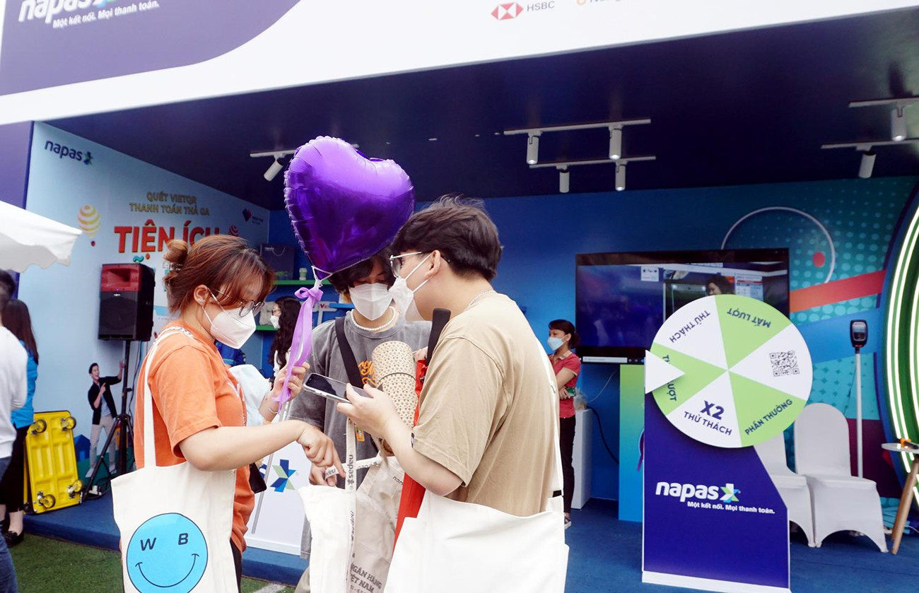 | Đặc biệt, gian hàng NAPAS còn thu hút các bạn sinh viên bởi có các phần quà thú vị, đó là những chiếc thẻ thanh toán siêu tiện lợi để trải nghiệm thanh toán không cần tiền mặt ở mọi gian hàng. |