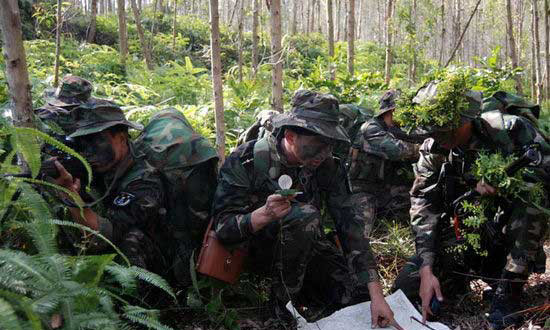 | Lính thủy đánh bộ hải quân Trung Quốc huấn luyện chiến đấu. |