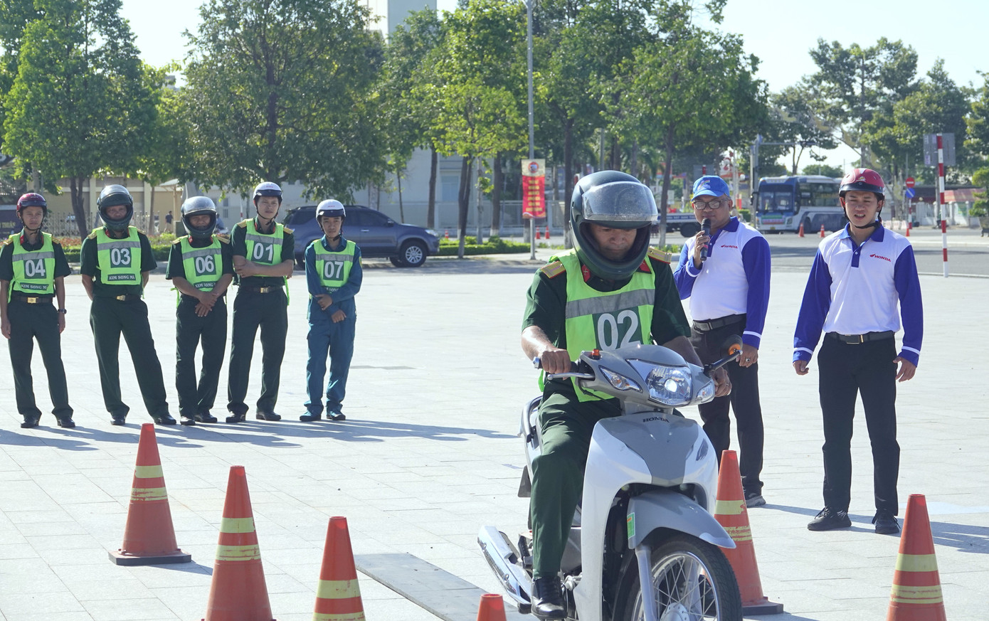 | Nhân viên Công ty Honda Việt Nam tổ chức hướng dẫn thực hành kỹ thuật lái xe an toàn. |