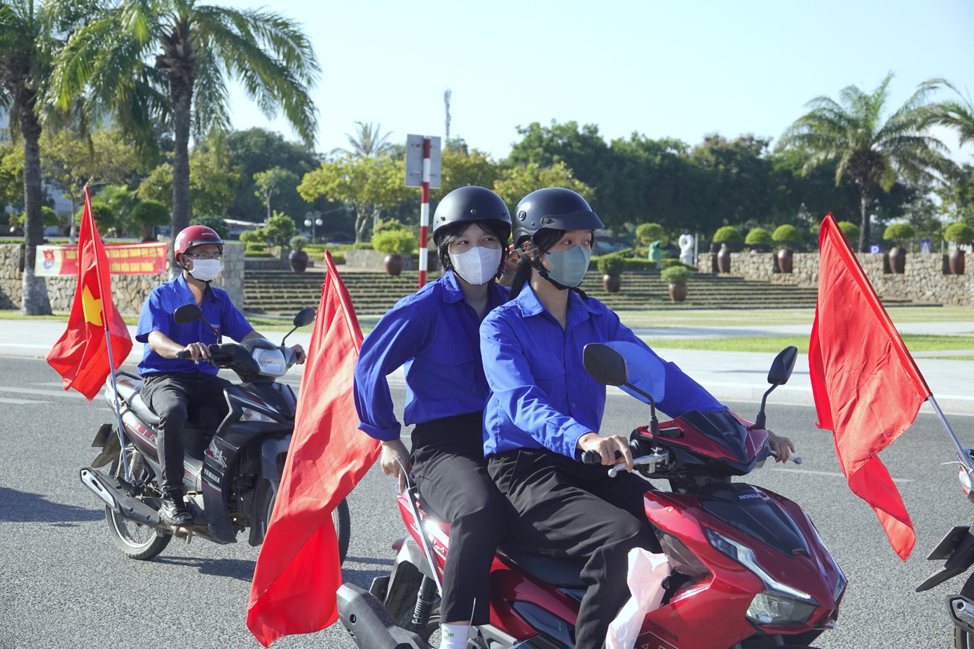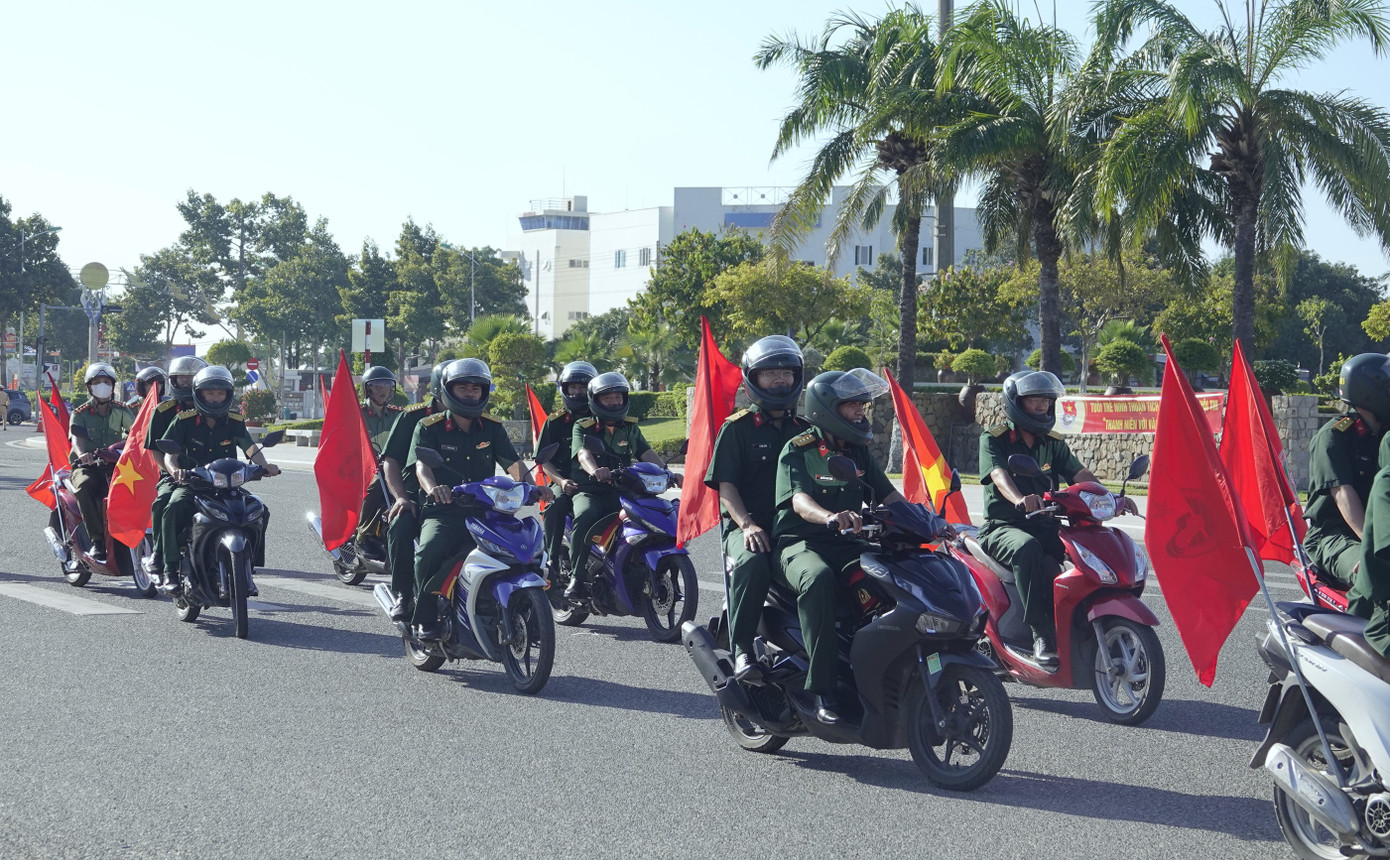 | Cán bộ, ĐVTN các lực lượng tham gia tuần hành, biểu dương lực lượng và tuyên truyền về Ngày hội "Thanh niên Quân đội với văn hóa giao thông" 2024. |