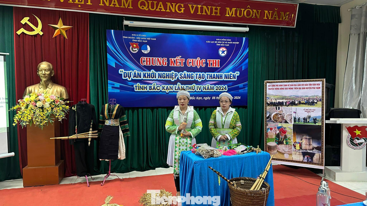 | Anh Triệu Tiến Trình- Bí thư Tỉnh Đoàn Bắc Kạn trao giải Nhất cho dự án "Bảo tồn giá trị văn hóa dân gian truyền thống..." của đội huyện Bạch Thông. |