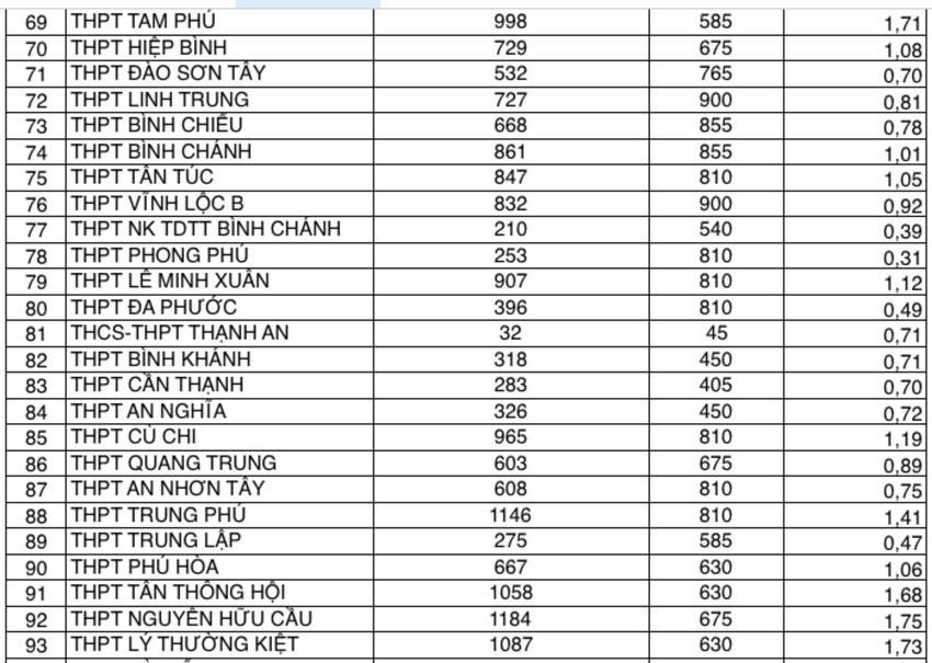 | Tỉ lệ chọi vào các trường công lập ở TPHCM năm 2023 |