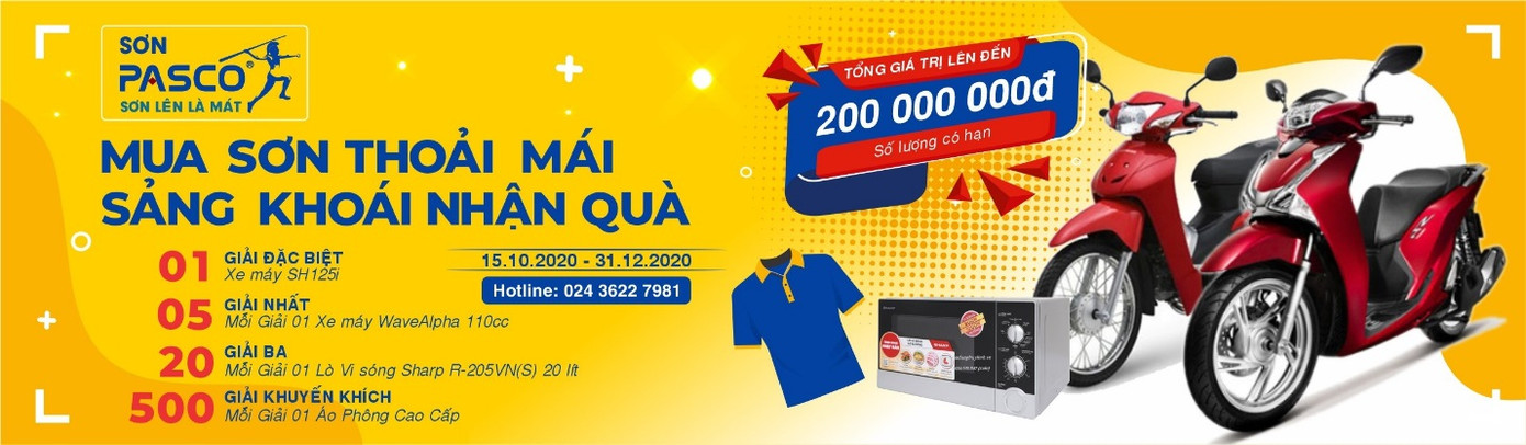 Lưu ý: Chương trình "Mua sơn thoải mái - Sảng khoái nhận quà" không áp dụng cho nhân viên công ty và đại lý sơn Pasco. Giải thưởng không có giá trị quy đổi thành tiền mặt.