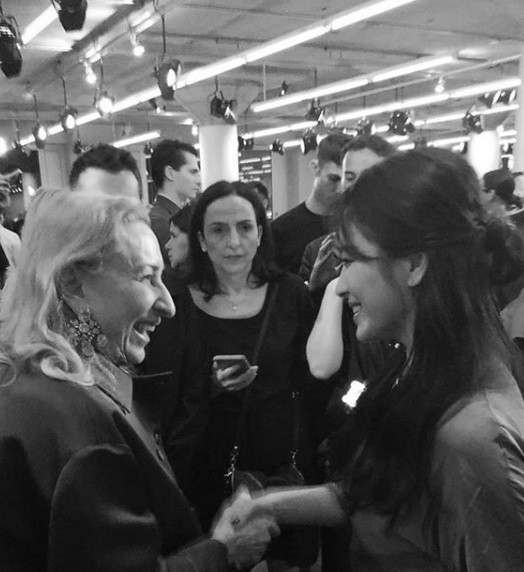 Cô chụp cùng nhà thiết kế nổi tiếng Miuccia Prada.