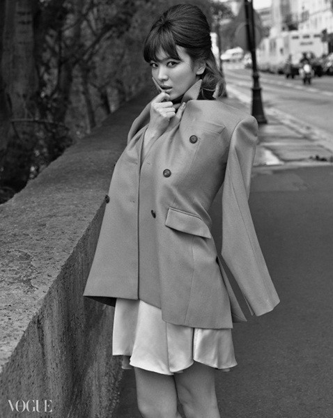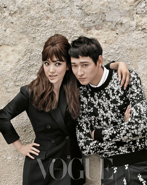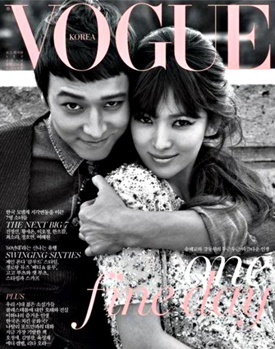 Những bức hình này sẽ xuất hiện trên tạp chí Vogue Hàn Quốc số tháng 9. Cả hai đều diện những thiết kế trong bộ sưu tập mới nhất của Dior. Song Hye Kyo để kiểu tóc gợi nhớ đến minh tinh nổi tiếng Audrey Hepburn, trang điểm phong cách cổ điển kiêu kỳ đầy quyến rũ, khoác tay Kang Dong Won – chàng diễn viên có gương mặt baby, lịch lãm và cũng rất bụi phủi trong bộ suit sành điệu.