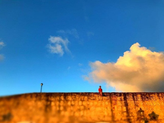 Mới đây, Song Hye Kyo cũng đăng ảnh chụp từ xa cô mặc váy đỏ giữa khung trời xanh biếc tuyệt đẹp.