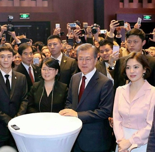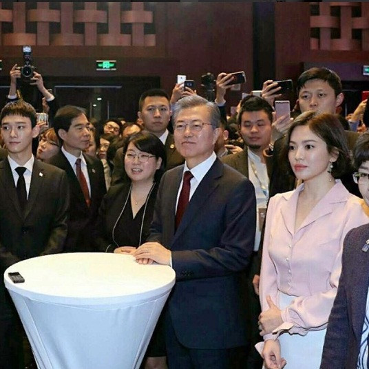 Bên cạnh Song Hye Kyo là các chàng trai nhóm nhạc EXO-CBX.