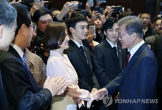 Cô vinh dự được bắt tay Tổng thống Hàn Quốc Moon Jae In.