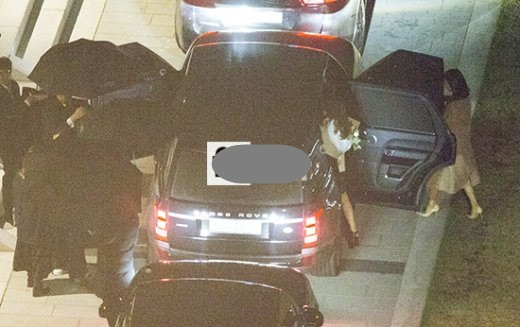 Vợ chồng nữ diễn viên lên xe riêng ra về sau khi kết thúc tiệc cưới.