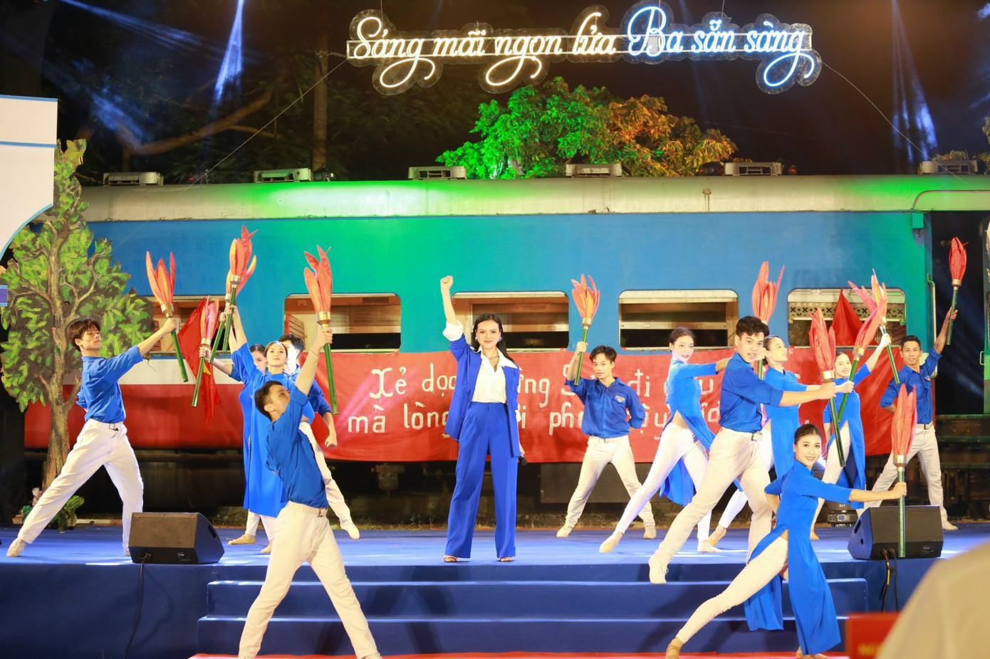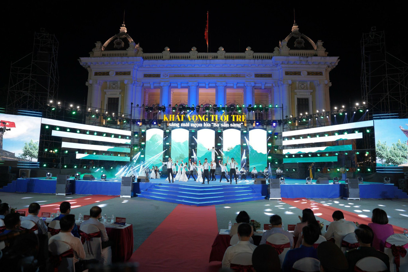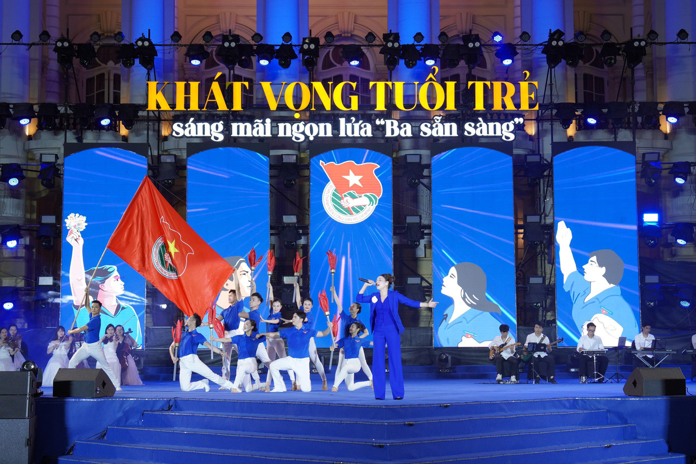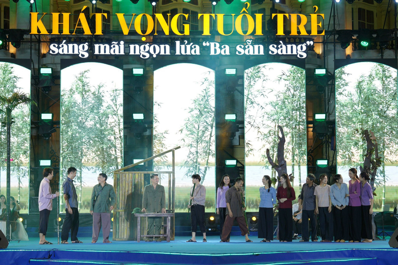 Tại hai điểm cầu đã diễn ra chương trình chính luận nghệ thuật “Khát vọng tuổi trẻ - Sáng mãi ngọn lửa Ba sẵn sàng”.