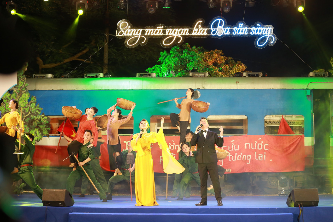 Các tiết mục nghệ thuật được dàn dựng công phu bằng hiệu ứng âm thanh, ánh sáng hiện đại, những câu chuyện được kể lại xen kẽ giữa hai điểm cầu: Quảng trường Cách mạng Tháng Tám và Nhà máy xe lửa Gia Lâm - những địa danh đã đi vào lịch sử như những “nhân chứng” chứng kiến hàng vạn thanh niên Thủ đô tràn đầy nhiệt huyết “Sẵn sàng chiến đấu; sẵn sàng gia nhập các lực lượng vũ trang; sẵn sàng đi bất cứ nơi đâu, làm bất cứ việc gì mà Tổ quốc cần đến”.