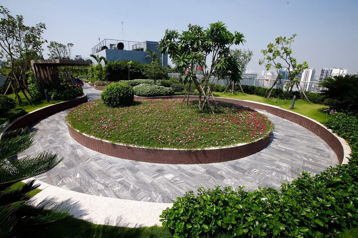 Nếu như sân thượng của các chung cư thường để các thiết bị kỹ thuật, thì ở Imperia Sky Garden lại được kiến tạo trở thành không gian tiện ích với 3.635 m2 như ở những khu nghỉ dưỡng 5 sao giữa lưng chừng trời.