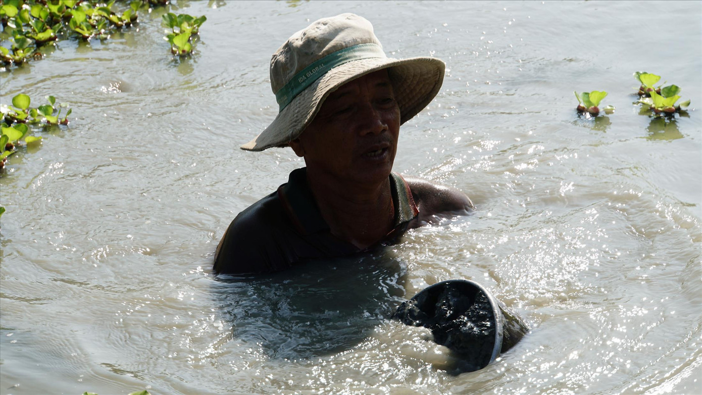 “Nhiều đêm trằn trọc, thức trắng không ngủ được vì lo. Nếu mình không còn sức làm nổi thì lấy đâu lo cho vợ con. Tương lai của con cái hổng biết sao nữa, hay cứ tiếp tục đạp xe chở lủng lẳng cái thùng đi lặn mò đất như cha của nó cả đời vẫn không khá nổi…”, thợ lặn đất Lê Văn Cập