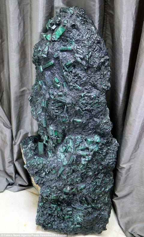 Khối ngọc lục bảo này nặng 360kg, được tìm thấy cách đây 1 tháng gần mỏ Carnaiba. Đây là nơi thăm dò khoáng sản ở Bahia Đông Bắc Brazil. Chủ nhân nói thêm, ông không dám tiết lộ bất kỳ điều gì về nơi cất giữ khối đá và hiện tại phải trả tiền để được bảo vệ an toàn.