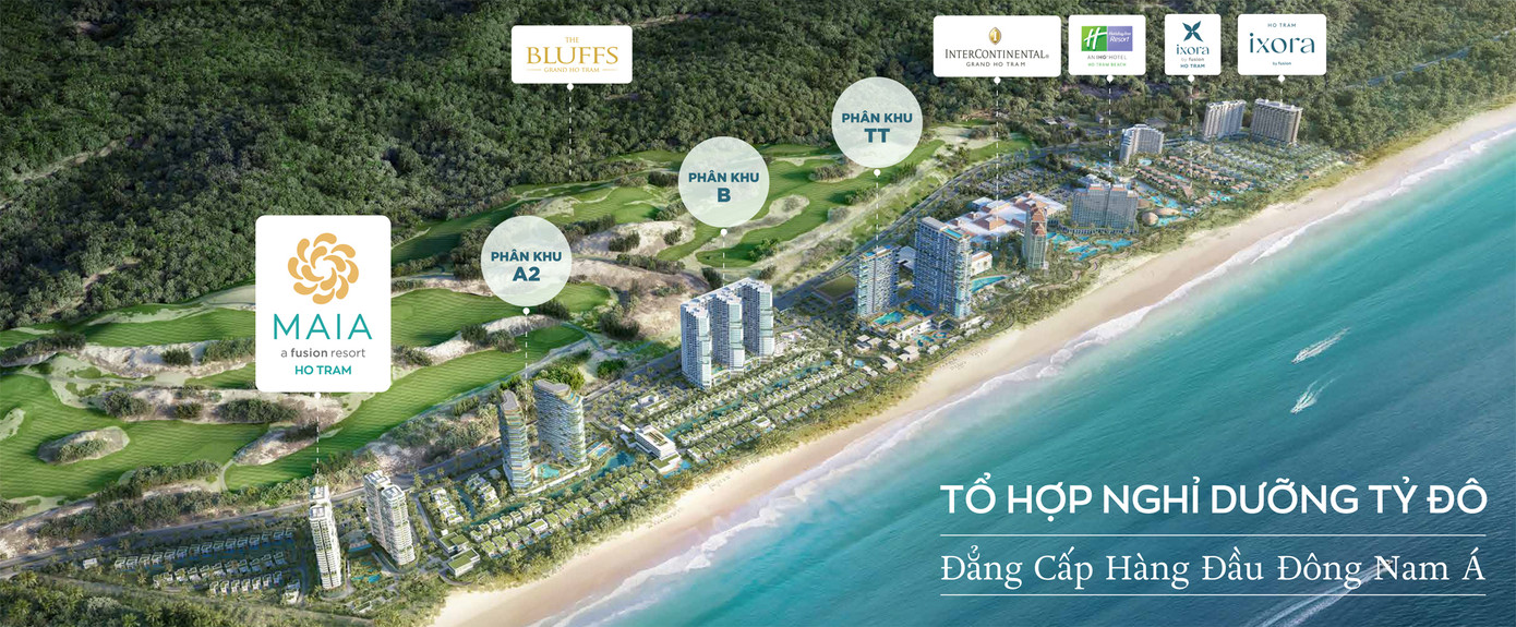 Tọa lạc tại xã Hồ Tràm, Thành Phố Hồ Chí Minh, Maia Resort Ho Tram sở hữu mặt tiền biển riêng, tổng diện tích 7 ha - một phần của phân khu 35 ha gồm: 7 tháp căn hộ nghỉ dưỡng và 200 biệt thự biển sang trọng. Dự án được thiết kế bởi Dewan Architects & Engineers (Dubai), bàn giao hoàn thiện nội thất cao cấp, và được vận hành bởi tập đoàn vận hành danh tiếng Fusion Hotel Group.