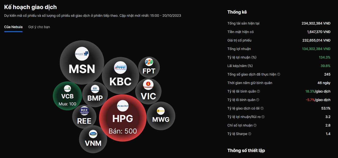 Đây là sản phẩm mới của Simplize. Nebula AI, sản phẩm AI Trading, đã đạt hơn 140% lợi nhuận trong thị trường downtrend gần đây, gấp hơn 30 lần so với chỉ số VNIndex. Sản phẩm này là một ví dụ hoàn hảo về sự tận dụng trí tuệ nhân tạo để đạt được kết quả xuất sắc trên thị trường chứng khoán.