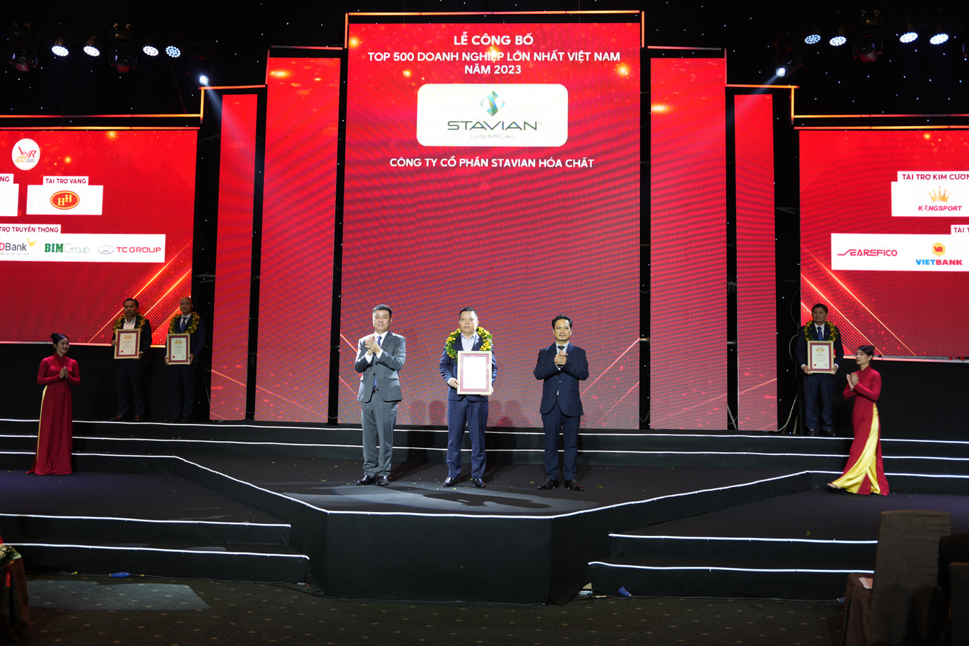 Tại thị trường nội địa, Stavian Hoá chất cũng đã thể hiện được vị thế đầu ngành khi tiếp tục thăng hạng trong Bảng xếp hạng VNR500 năm 2023, vươn lên xếp thứ 21 trong Top 500 Doanh nghiệp tư nhân lớn nhất Việt Nam và xếp thứ 45 trong Top 500 Doanh nghiệp lớn nhất Việt Nam.