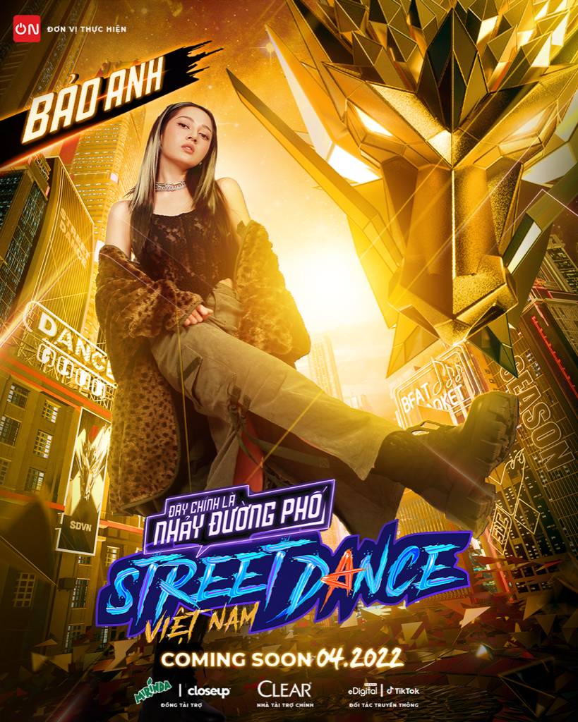 Ngồi ghế nóng Street Dance Việt Nam mùa đầu tiên, Bảo Anh chọn linh vật Rồng - Dragon mạnh mẽ, với sự uyển chuyển và uy lực. Khu phố tượng trưng cho Bảo Anh tại chương trình là hình ảnh Cây Cầu, thể hiện nét đặc trưng của Huế và Hà Nội.