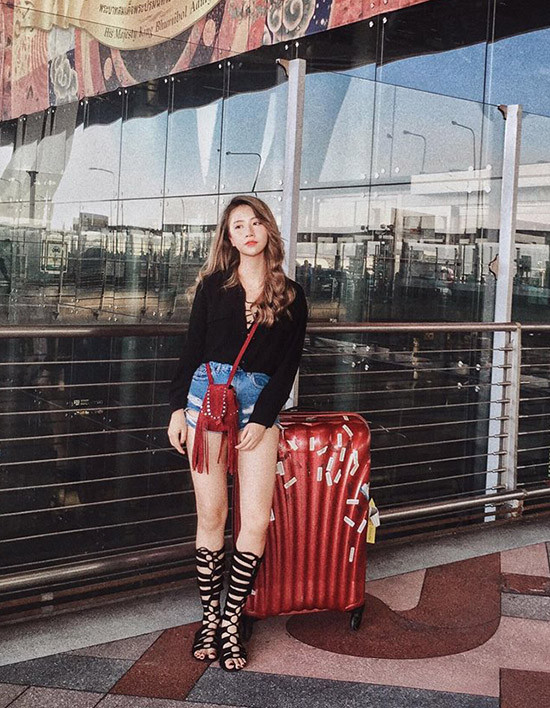 Quỳnh Anh Shyn ra sân bay với mốt đồ boho cá tính.