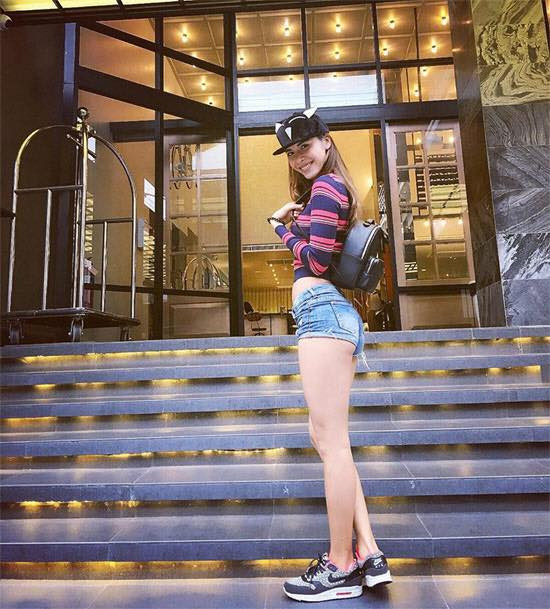 Quần "5cm" là vũ khí giúp Minh Tú khoe vòng 3 cùng đôi chân thon dài.