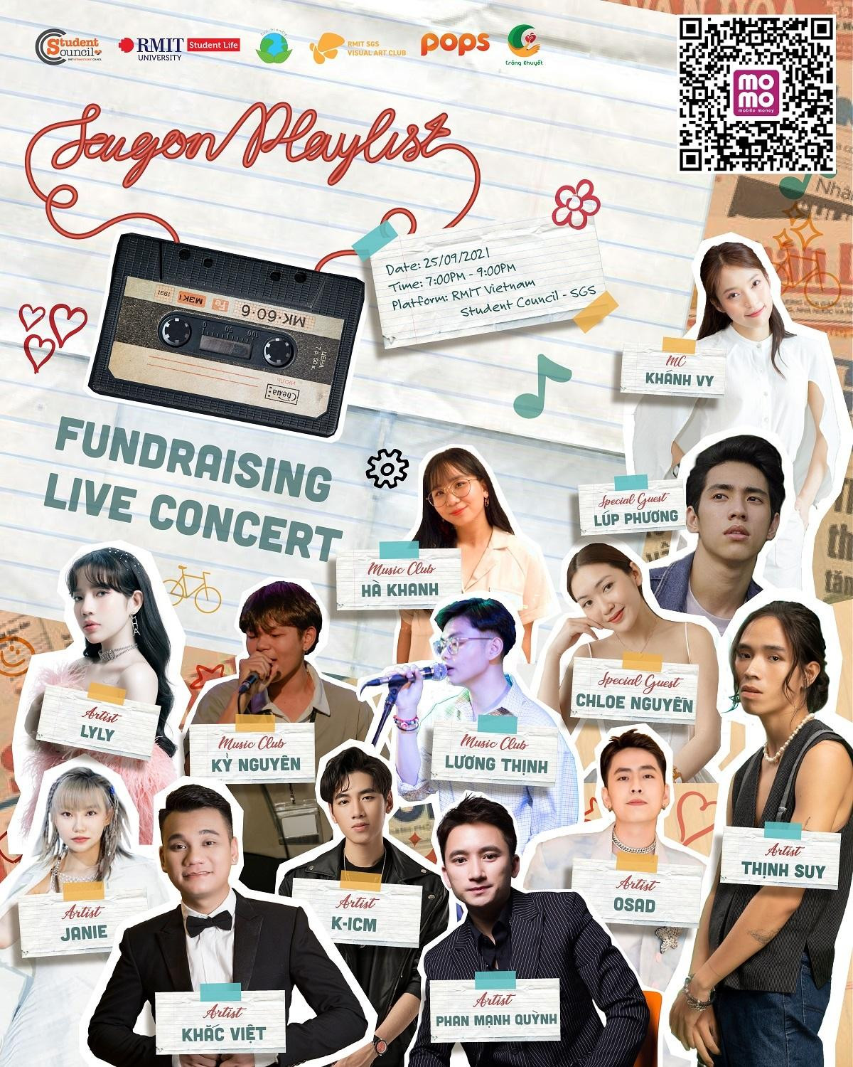 Đêm nhạc Saigon Playlist do RMIT Vietnam Student Council (Hội đồng sinh viên Đại học RMIT) phối hợp tổ chức cùng Công ty Truyền thông POPS Worldwide và Từ Thiện Trăng Khuyết.