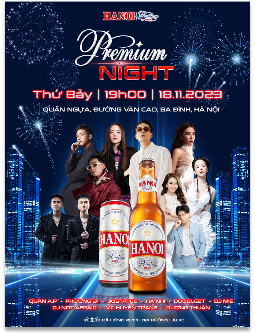 Với sự đầu tư công phu, hoành tráng, chương trình nghệ thuật Lễ hội Bia Hà Nội năm nay sẽ mang tới những đêm nhạc với những cung bậc cảm xúc và trải nghiệm độc đáo với chương trình nghệ thuật đặc sắc với sự tham gia của dàn nghệ sĩ đình đám như Justatee, Hà Nhi, Dương Hoàng Yến, Anh Tú, Văn Mai Hương, Quân A.P, Phương Ly ,… cũng như sự xuất hiện của các gương mặt nghệ sĩ trẻ tài năng được nhiều bạn trẻ quan tâm như rapper Double 2T, DJ Mie... tại đêm nhạc Hanoi Premium Night hứa hẹn sẽ đưa khán giả tận hưởng không khí lễ hội không chỉ đậm đà bản sắc văn hóa mà còn cháy hết mình cùng không khí lễ hội và đêm nhạc đầy cảm xúc.
