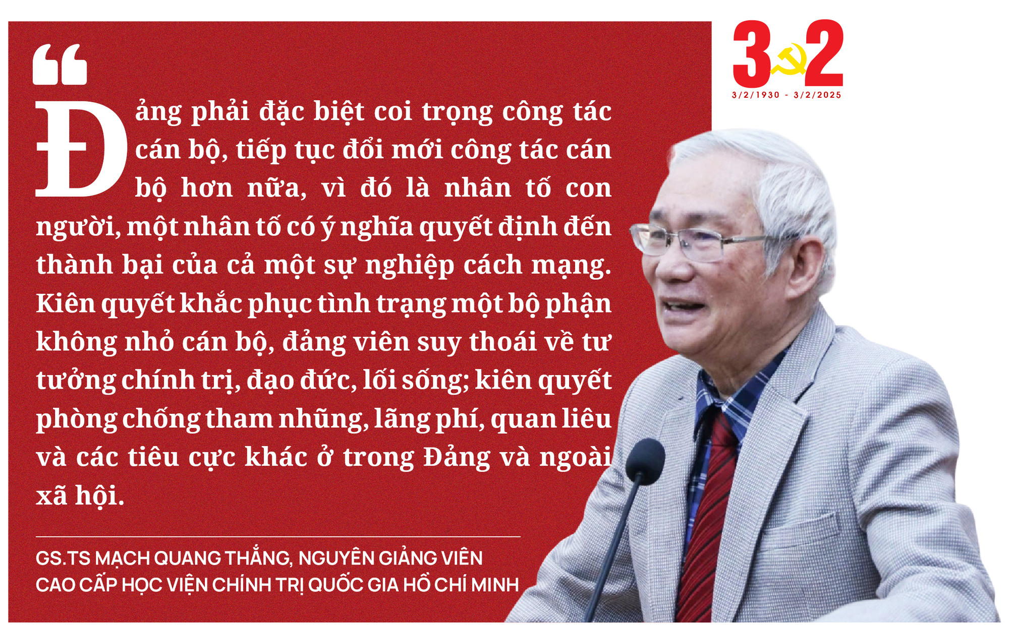 Trong bài viết Rạng rỡ Việt Nam nhân dịp kỷ niệm 95 năm Ngày thành lập Đảng Cộng sản Việt Nam (3/2/1930 – 3/2/2025), Tổng Bí thư Tô Lâm nhấn mạnh: Đảng ta ra đời với sứ mệnh lãnh đạo cách mạng, đại diện cho lợi ích của giai cấp công nhân, nhân dân lao động và toàn thể dân tộc Việt Nam. Ngay từ những ngày đầu đấu tranh giành độc lập, đến khi trở thành Đảng cầm quyền, Đảng luôn kiên định mục tiêu giải phóng dân tộc, xây dựng chủ nghĩa xã hội, đem lại ấm no, hạnh phúc cho nhân dân. Đảng không tồn tại vì lợi ích riêng mà hoạt động vì quyền lợi của toàn dân. Quyền lực lãnh đạo của Đảng không phải tự thân mà có, mà do nhân dân trao quyền, là sự ủy thác của nhân dân. Đảng không có mục đích nào khác là đấu tranh vì lợi ích của nhân dân, quốc gia và dân tộc. Chủ tịch Hồ Chí Minh từng nhấn mạnh: "Đảng không phải là một tổ chức để làm quan phát tài. Nó phải làm tròn nhiệm vụ giải phóng dân tộc, làm cho Tổ quốc giàu mạnh, đồng bào sung sướng". Chính vì vậy, Đảng phải luôn gắn bó mật thiết với nhân dân, lấy lợi ích của nhân dân làm mục tiêu cao nhất, giữ vững bản chất cách mạng và vai trò tiên phong của mình.