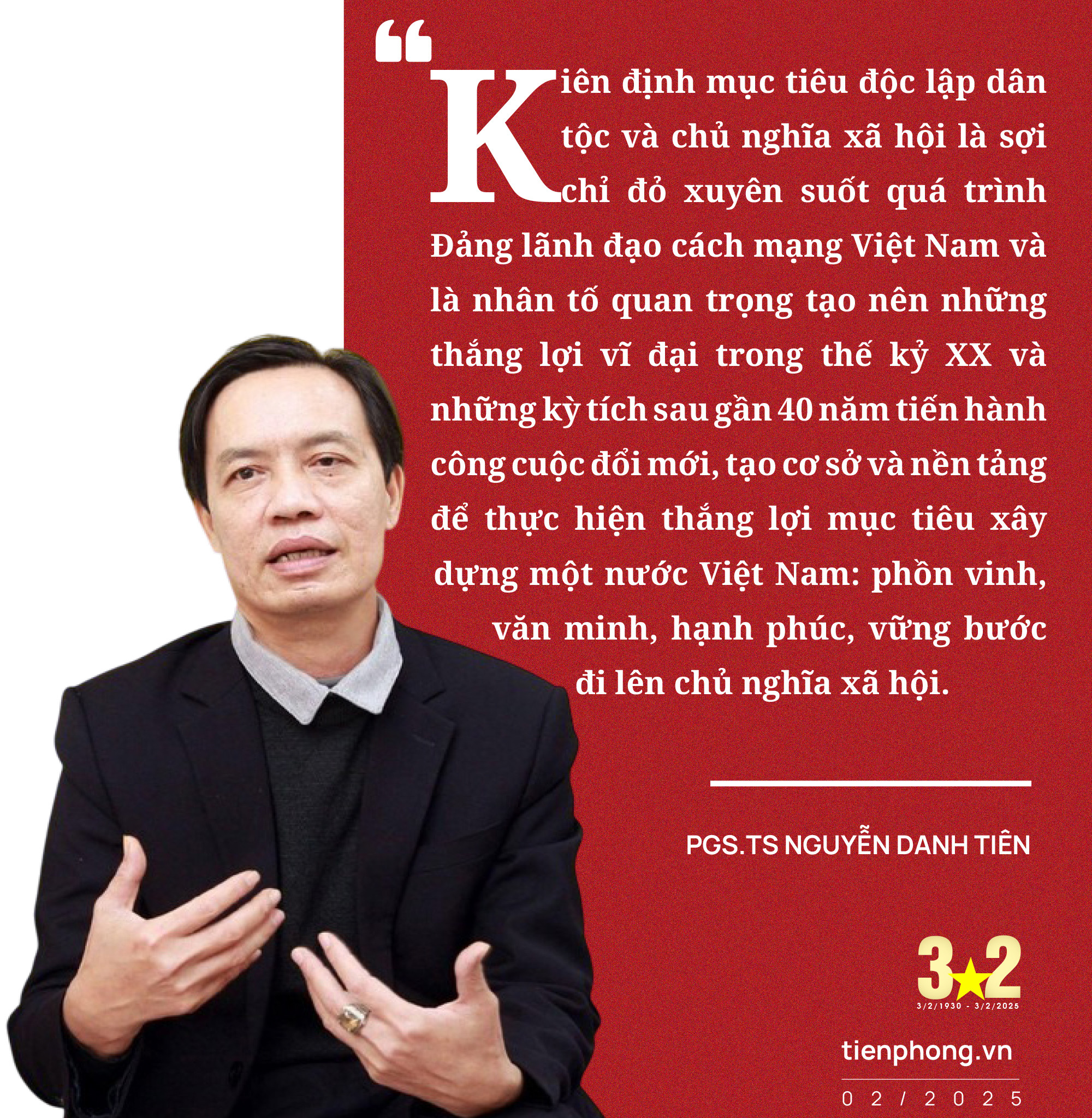 “Thực tế phong phú của cách mạng Việt Nam 95 năm qua, là minh chứng sinh động khẳng định: Kiên định mục tiêu độc lập dân tộc và chủ nghĩa xã hội là sợi chỉ đỏ xuyên suốt quá trình Đảng lãnh đạo cách mạng Việt Nam và là nhân tố quan trọng tạo nên những thắng lợi vĩ đại trong thế kỷ XX và những kỳ tích sau gần 40 năm tiến hành công cuộc đổi mới, tạo cơ sở và nền tảng để thực hiện thắng lợi mục tiêu xây dựng một nước Việt Nam: phồn vinh, văn minh, hạnh phúc, vững bước đi lên chủ nghĩa xã hội”, PGS.TS Nguyễn Danh Tiên nhấn mạnh.
