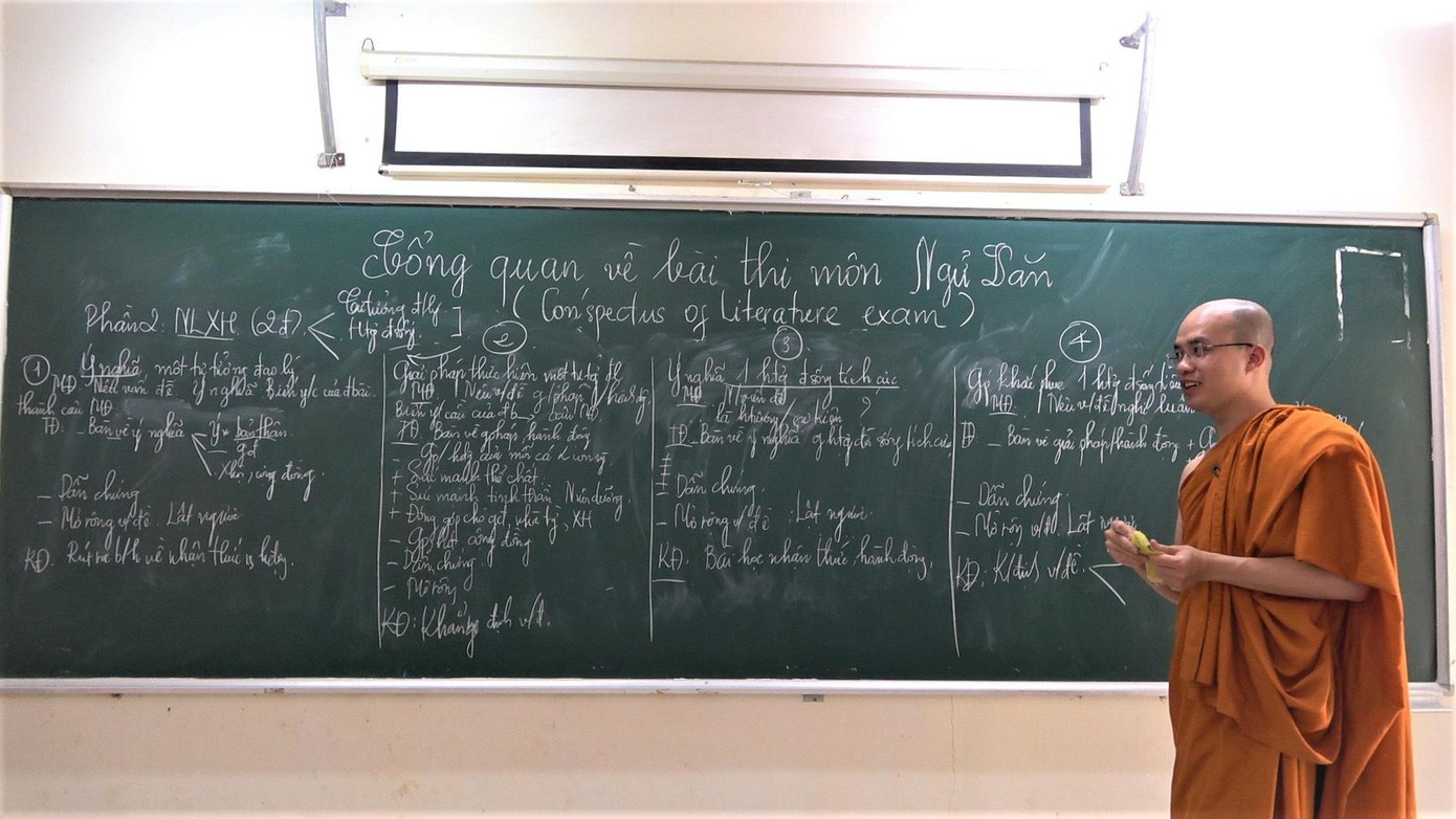 Dạo gần đây, khi tình hình dịch bệnh căng thẳng, sư Minh Giải đã duy trì dạy học trực tuyến. Kể từ khi xuất gia đến nay đã được 3 năm, sư đã thành công viên mãn với 2 khóa dạy miễn phí, mà minh chứng là các bài thi của học trò đạt điểm cao trong kỳ thi tốt nghiệp THPT vừa qua.