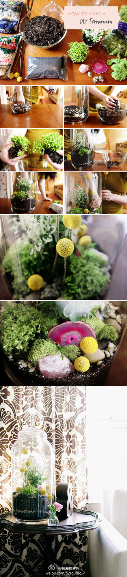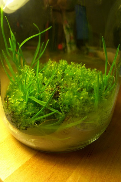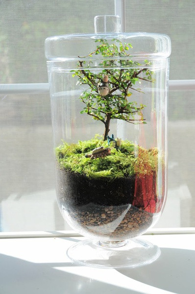 Bạn có thể sử dụng đất, các loại đất dinh dưỡng, rêu, mùn... để làm nền, sau đó trồng các loại cây xanh theo ý thích. Với cách trồng này, các loại cây dễ trồng, dễ thích nghi hoặc chịu được môi trường sống khác biệt như các loại cây họ dương xỉ, xương rồng, hoa đá... được lựa chọn nhiều hơn cả.