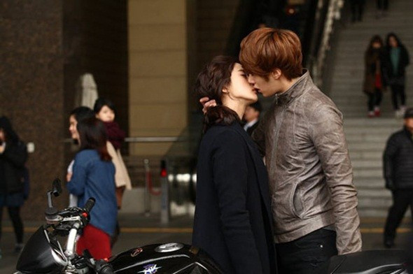 4. Jung Il Woo và Lee Chung Ah trong Flower Boy Ramen Shop: Flower Boy Ramen Shop có màn khóa môi mãnh liệt giữa hai nhân vật của Jung Il Woo và Lee Chung Ah. Khi đó, chàng nhận ra tình cảm dành cho nàng nên đã xuống xe máy rồi kéo nàng lại gần để hôn. Khi quay cảnh này, Jung Il Woo lỡ cắn phải môi Lee Chung Ah.