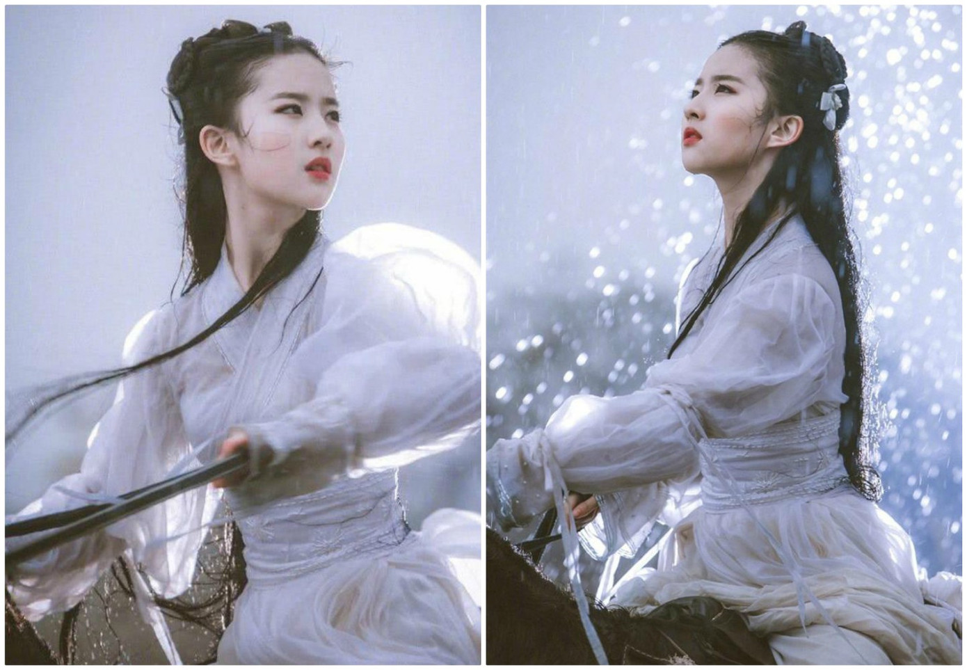 Bộ ảnh cưỡi ngựa phi nước đại trong mưa đẹp như mộng của “Tiểu Long Nữ” Lưu Diệc Phi trong bộ phim “Thần Điêu Đại Hiệp” bản 2006 làm nức lòng khán giả bởi vẻ đẹp thanh thuần, thoát tục. Tuy vậy, phân cảnh này lại không hề xuất hiện trong phim