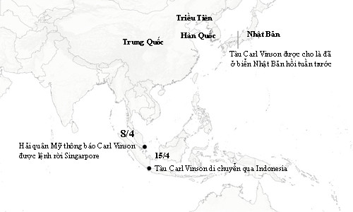 Vấn đề là trong thời điểm đó, tàu sân bay USS Carl Vinson cùng biên đội ba tàu hộ tống đang di chuyển theo hướng ngược lại để tham gia vào một đợt diễn tập chung với hải quân Australia trên Ấn Độ Dương, cách bán đảo Triều Tiên hơn 5.600 km về phía tây nam, theo NYTimes.