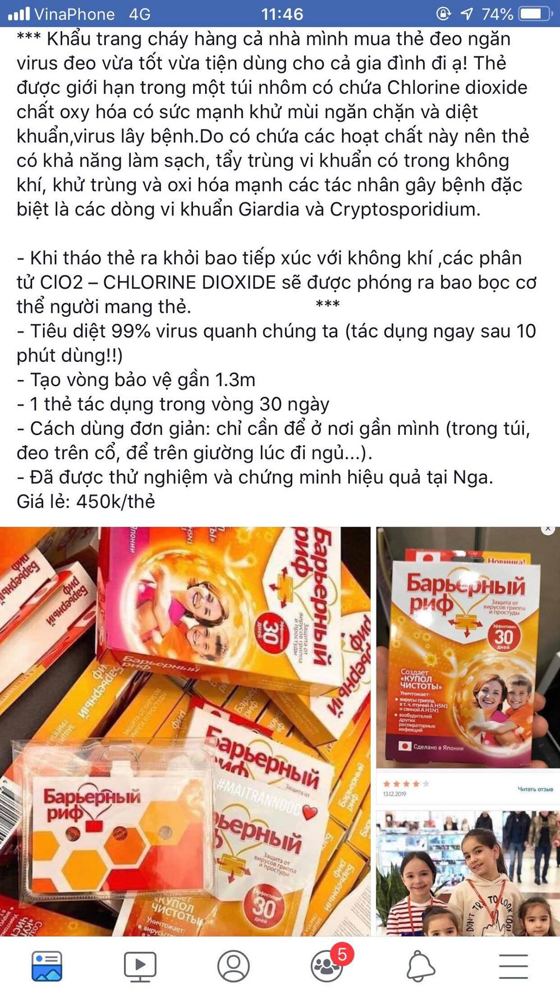 Quảng cáo bán 'thẻ chống virus' với giá 450.000 đồng/ thẻ