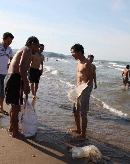 Một số du khách kể lại, khi họ đang tắm biển thì thấy có vật mềm, nhờn dính vào người nên rất hoảng sợ. Định thần mới biết đó là sứa chết trôi dạt vào bờ. Khu vực phát hiện sứa chết ngay sau đó đã vắng bóng du khách bởi nhiều người bị bỏng, ngứa vì nọc sứa.