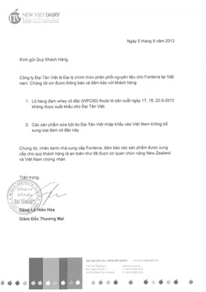 Nhân đây, các giấy chứng nhận từ công ty Fonterra (New Zealand) và Uruguay đảm bảo nguồn sữa mà Wel Yo sử dụng làm nguyên liệu sản xuất không bị nhiễm khuẩn cũng đã được công ty công bố rộng rãi đến công chúng.